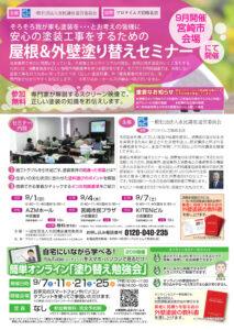 9月1日(日)、9月4日(水)、9月7日(土)に『屋根・外壁塗り替えセミナー』を行います。