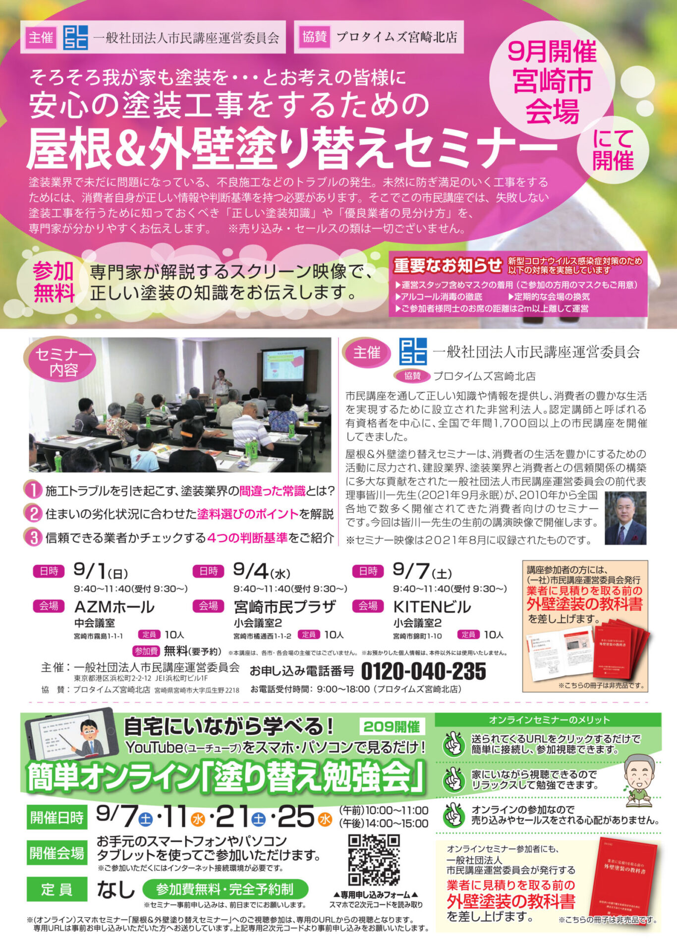一般社団法人市民講座運営委員会の主催で行いますが、弊社プロタイムズ宮崎北店 株式会社 東建装 が協賛させて頂いております。