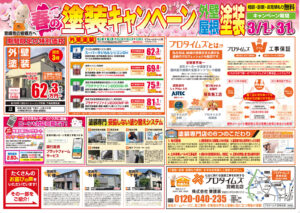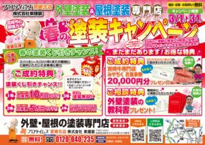 キャンペーン期間は3月末まで!これから塗装工事にはよい季節になります!この機会に是非お問合せお待ちしております。