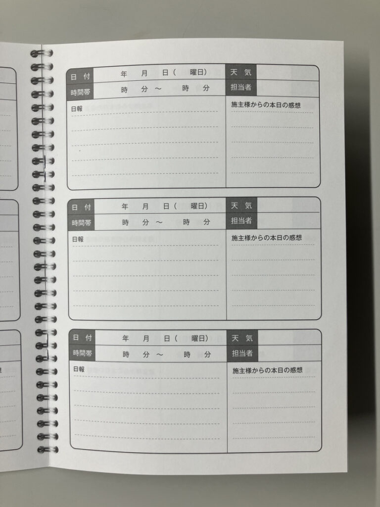 プロタイムズでは、お施主様と現場で直接塗装する職人の間で交換日記を行っています。