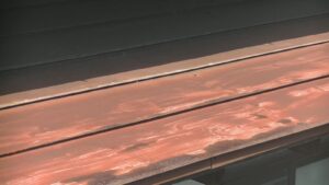 屋根自体の防水性能が低下し、そしてそのまま劣化が進行し続けた場合には塗膜剥離が発生し防水機能が無くなります。鉄素材であればここから錆の発生などにも進行していきます。