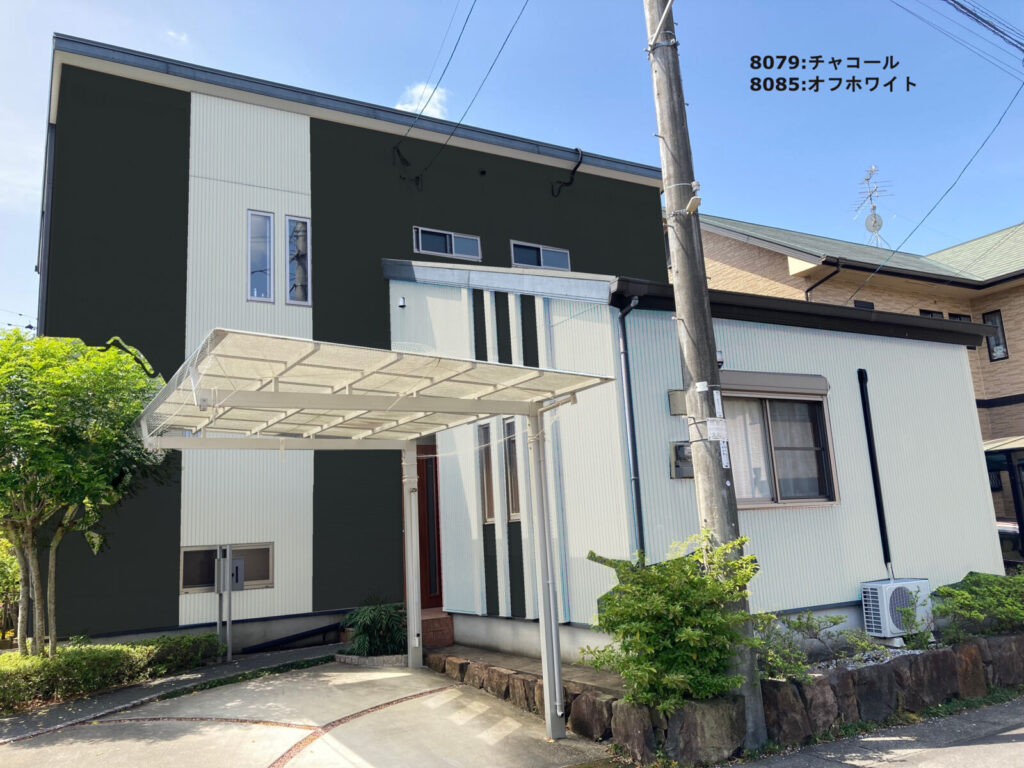 宮崎北店で行うカラーシミュレーションでは、複数のカラーパターンのイメージを比較出来る様に作成しております。下のマイカラーシミュレーションよりは細かな塗分けの提案をお受け出来ますがご希望頂いてからイメージを作成しますので都度少しだけ作成のお時間を頂いております。