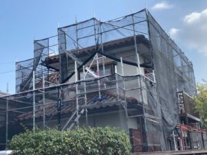 足場仮設ではどの現場でもメッシュシートを張ります。