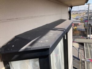 一つ目は 軒樋 の施工前、施工後になります、二つ目は 庇(板金) 施工前、施工後です。