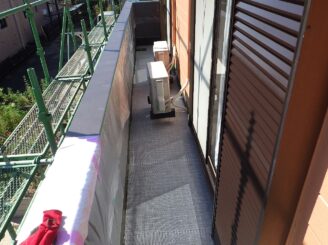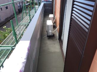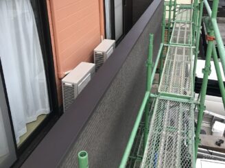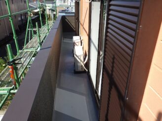 ベランダ外壁部分です。笠木からサビ汁の付着が見られました。