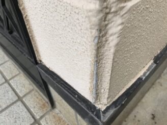 外壁コーナー部は塗膜の剥離が見られ、サイディングの素地が露出していました。