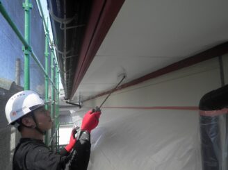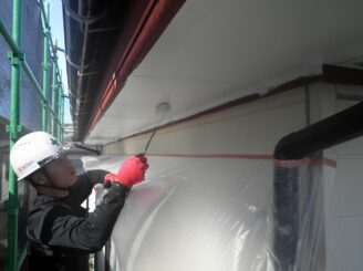 軒天井 下塗り塗布状況
