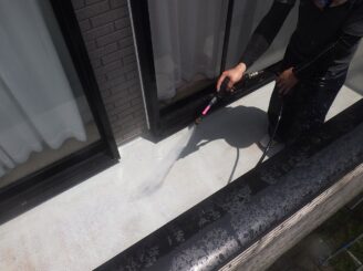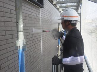 汚れや旧塗膜を高圧水で落としていきます