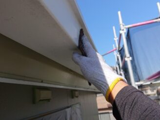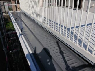 軒樋に、砂やほこりの溜まりが見られます。