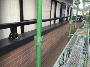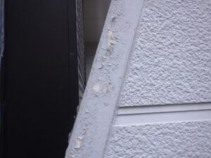 外壁は窯業系サイディングです。塗膜が剥離し、素地が露出しています。