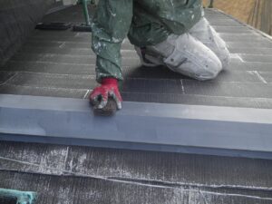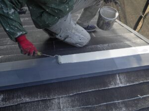 棟板金 下塗り塗布状況
