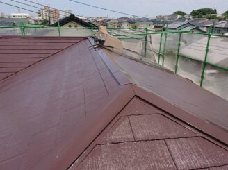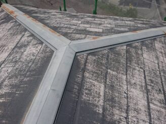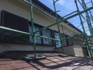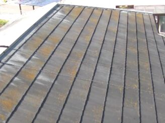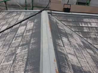 屋根は塗膜の劣化が見られ、苔が生えていました。