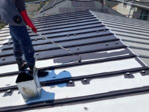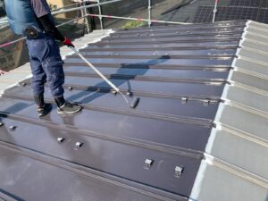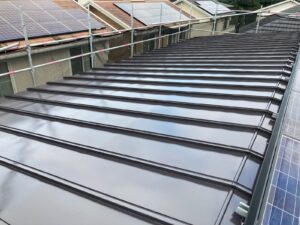 屋根はガルバリウム鋼板です。錆、色褪せが見られます。