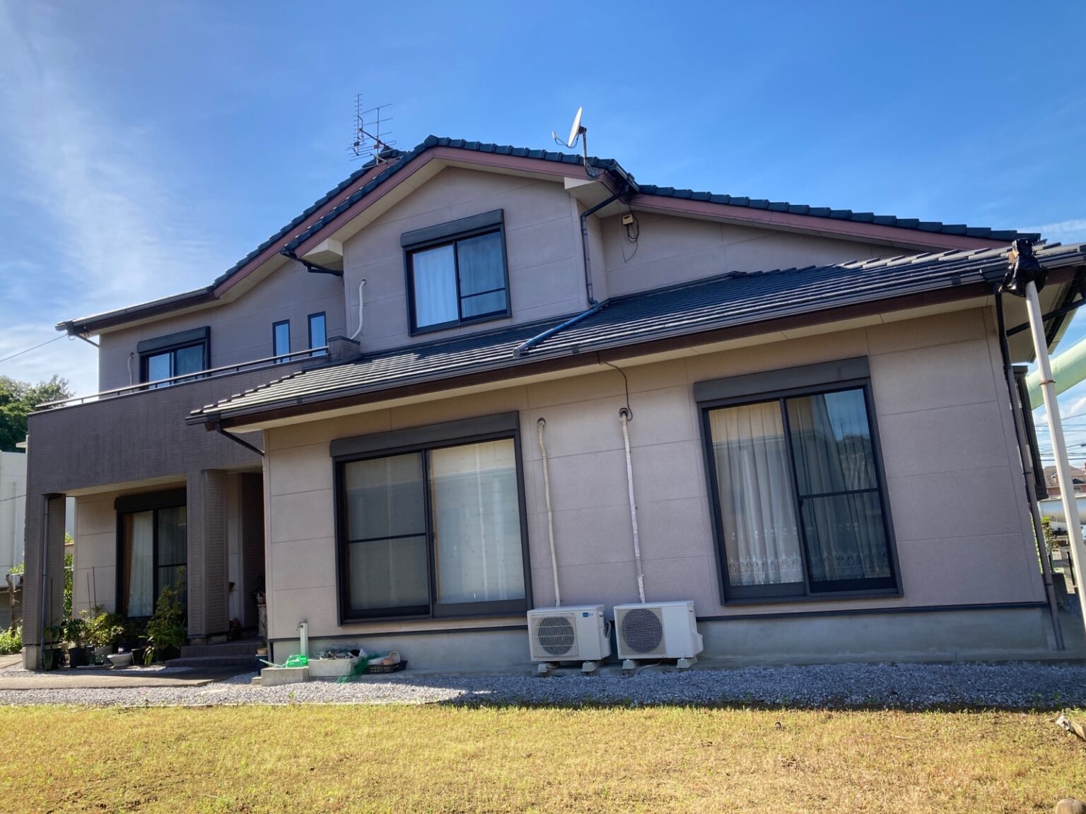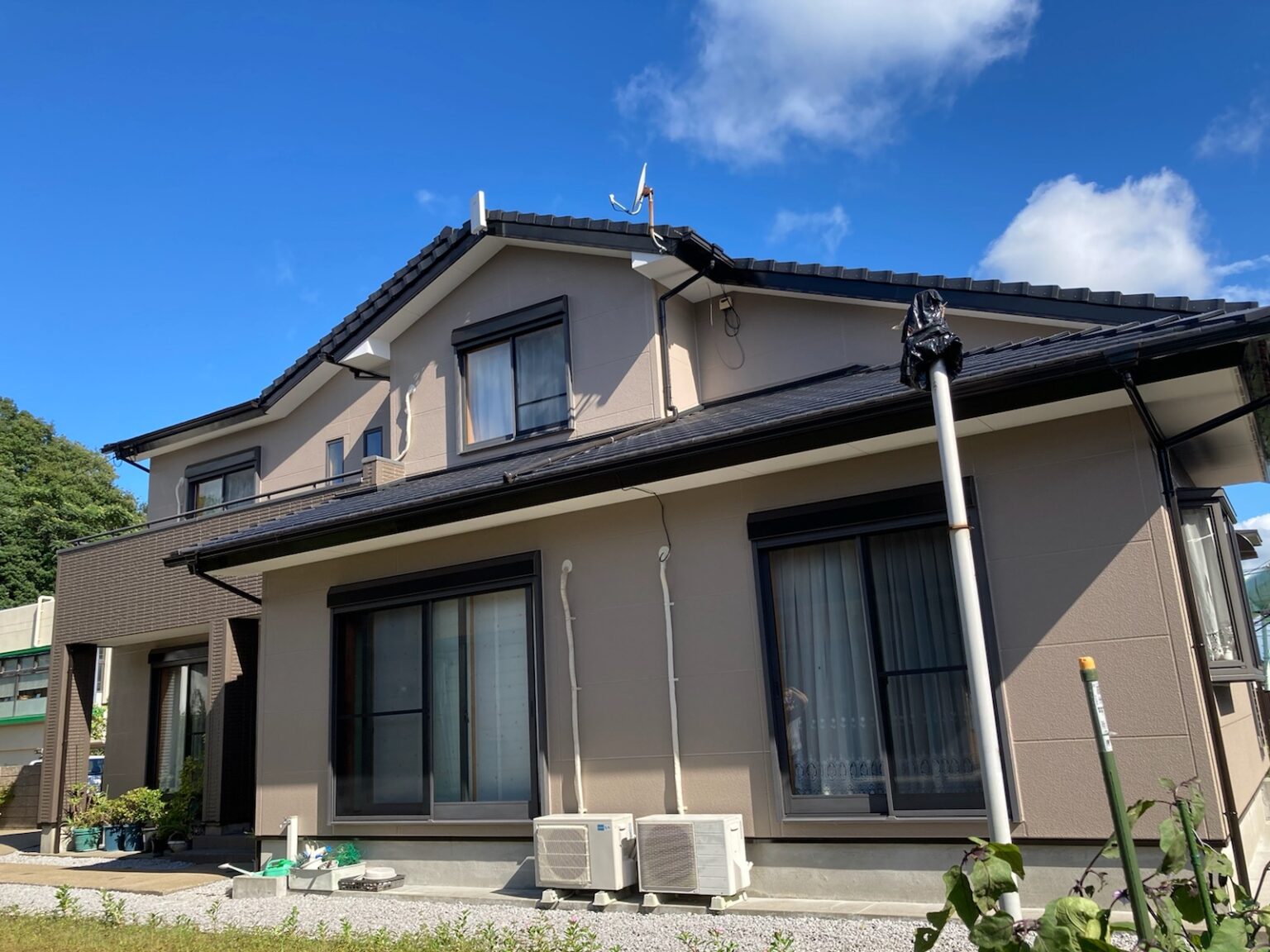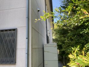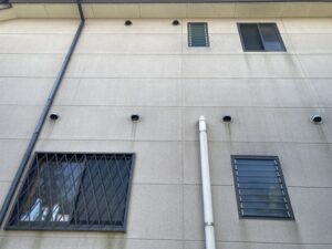 竪樋に色褪せが見られます。