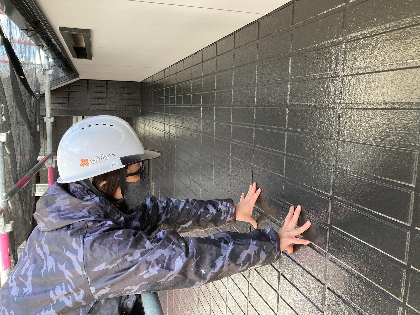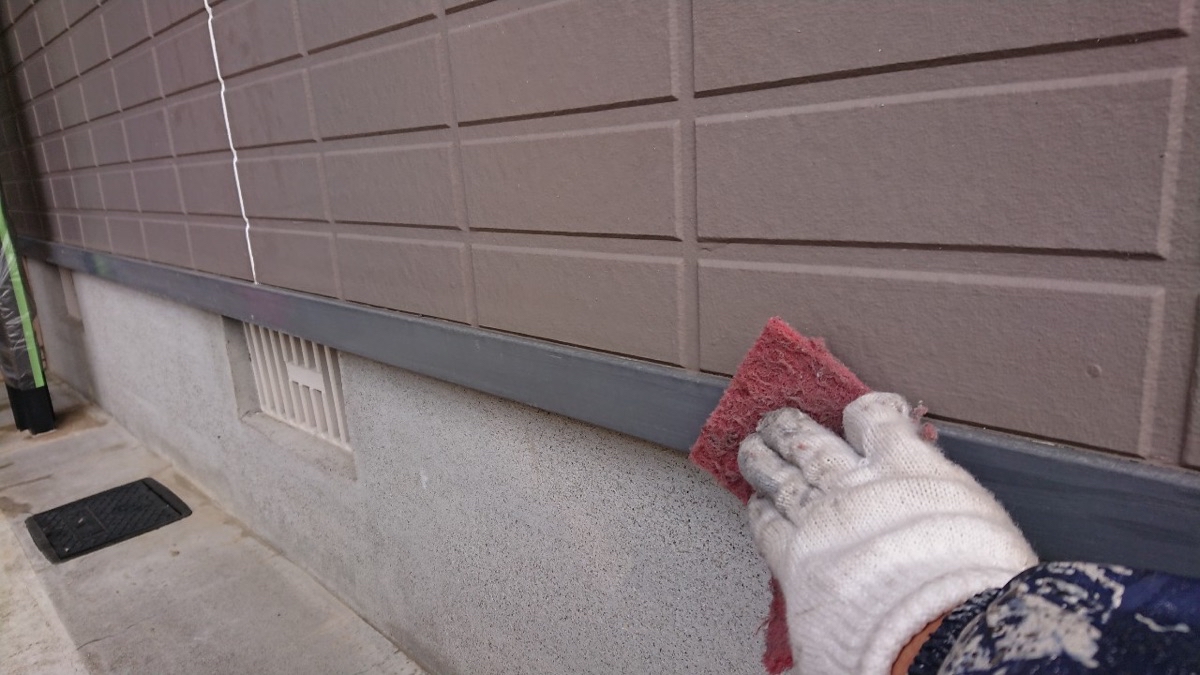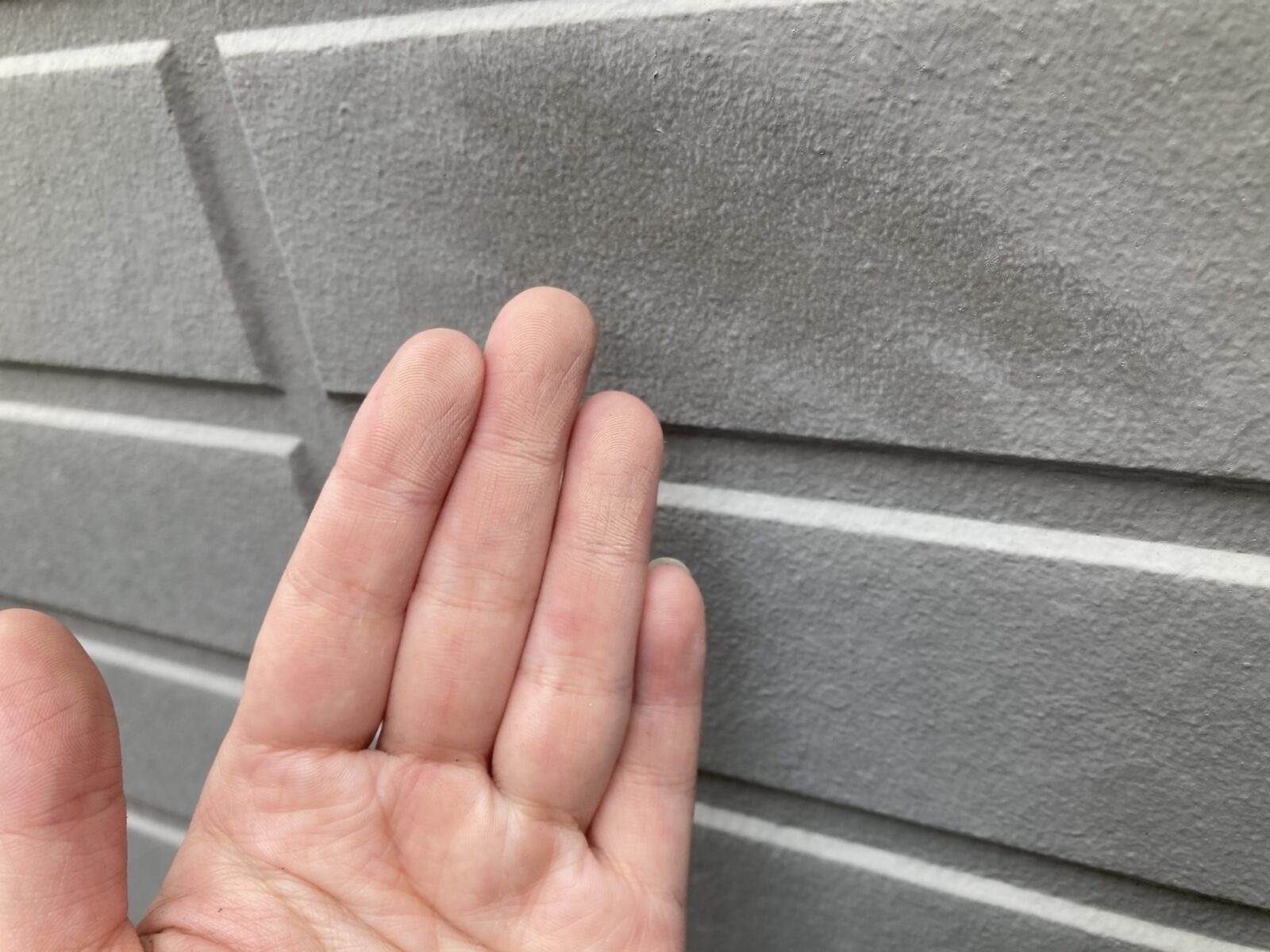 外壁は窯業系サイディングです。塗膜の擦れが見られます