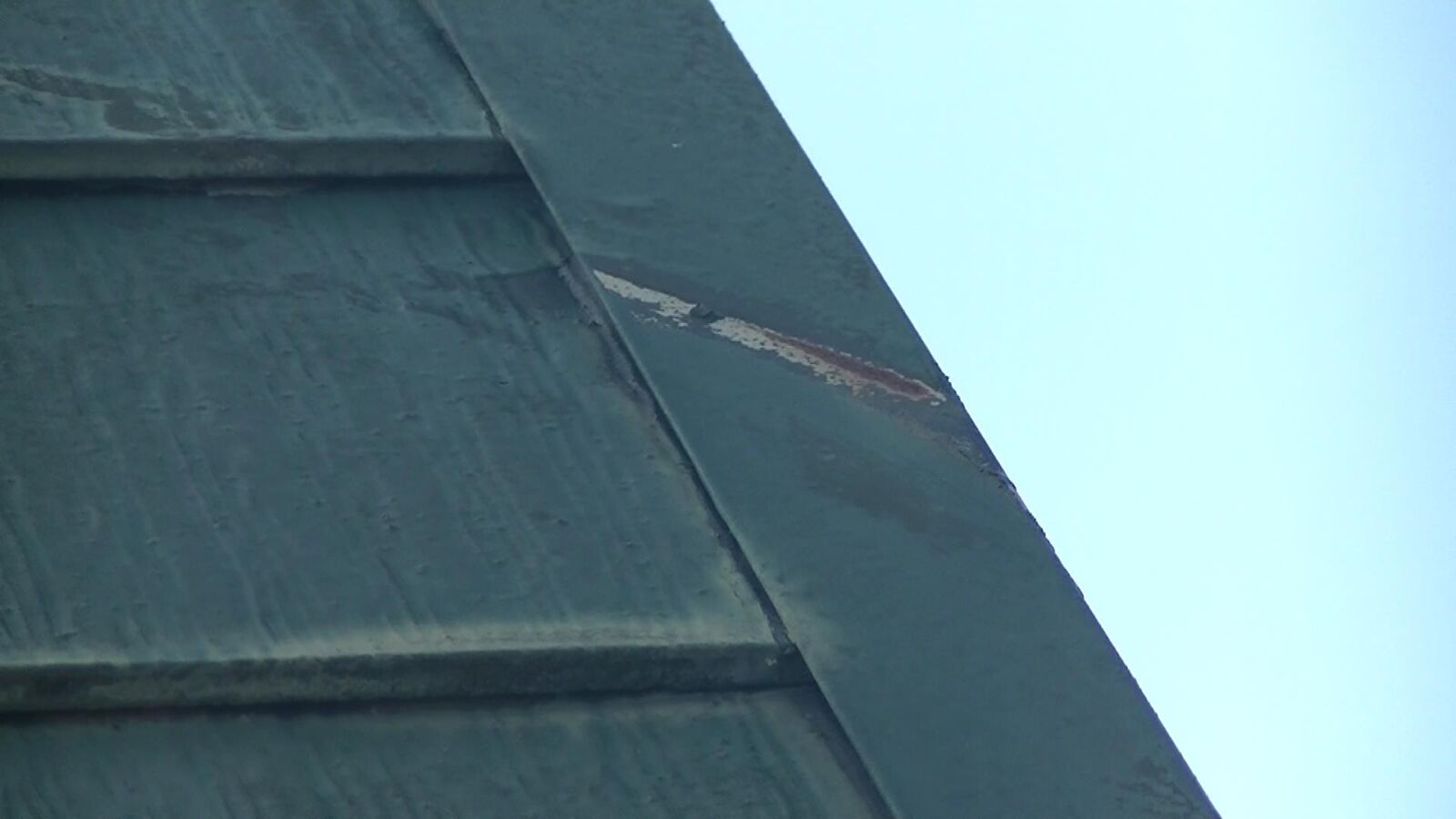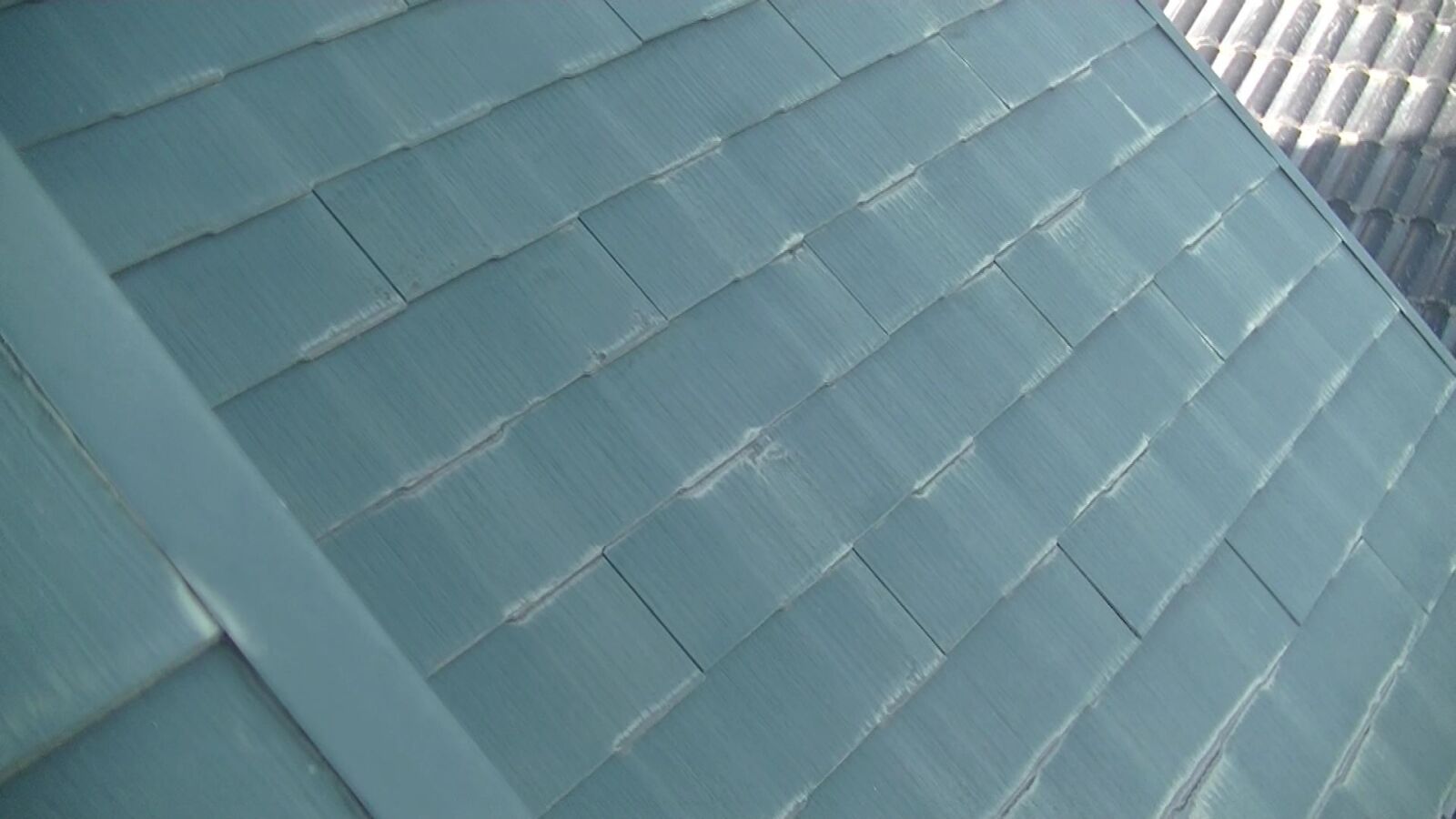 屋根材はスレート瓦です。塗膜劣化が見られます。