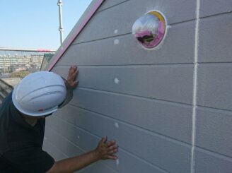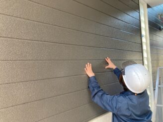 外壁のシーリング上の塗膜にひびわれが見られます。