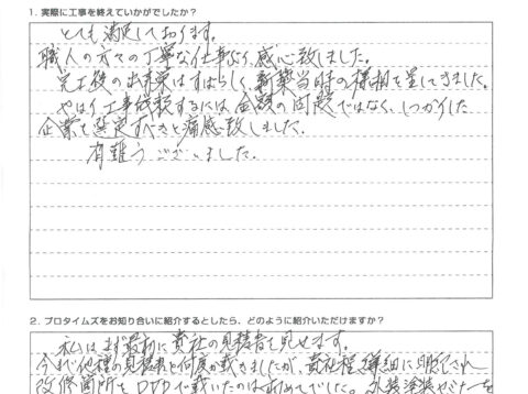 とても満足しております。職人の方々の丁寧な仕事ぶり感心致しました。