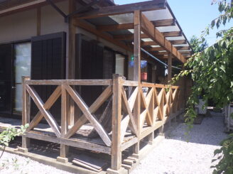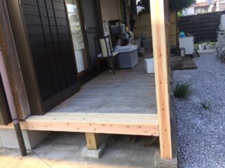 ウッドデッキは短くカットしました。(屋根がなく雨があたる部分)