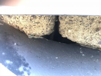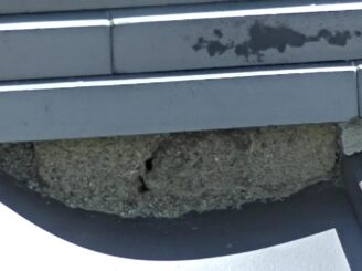 のし瓦下のセメント漆喰部分にひび割れがありました。