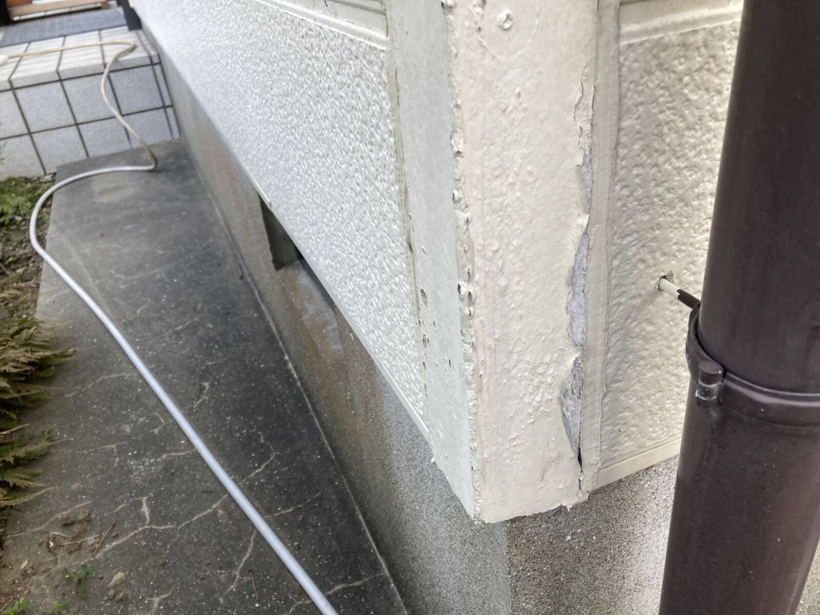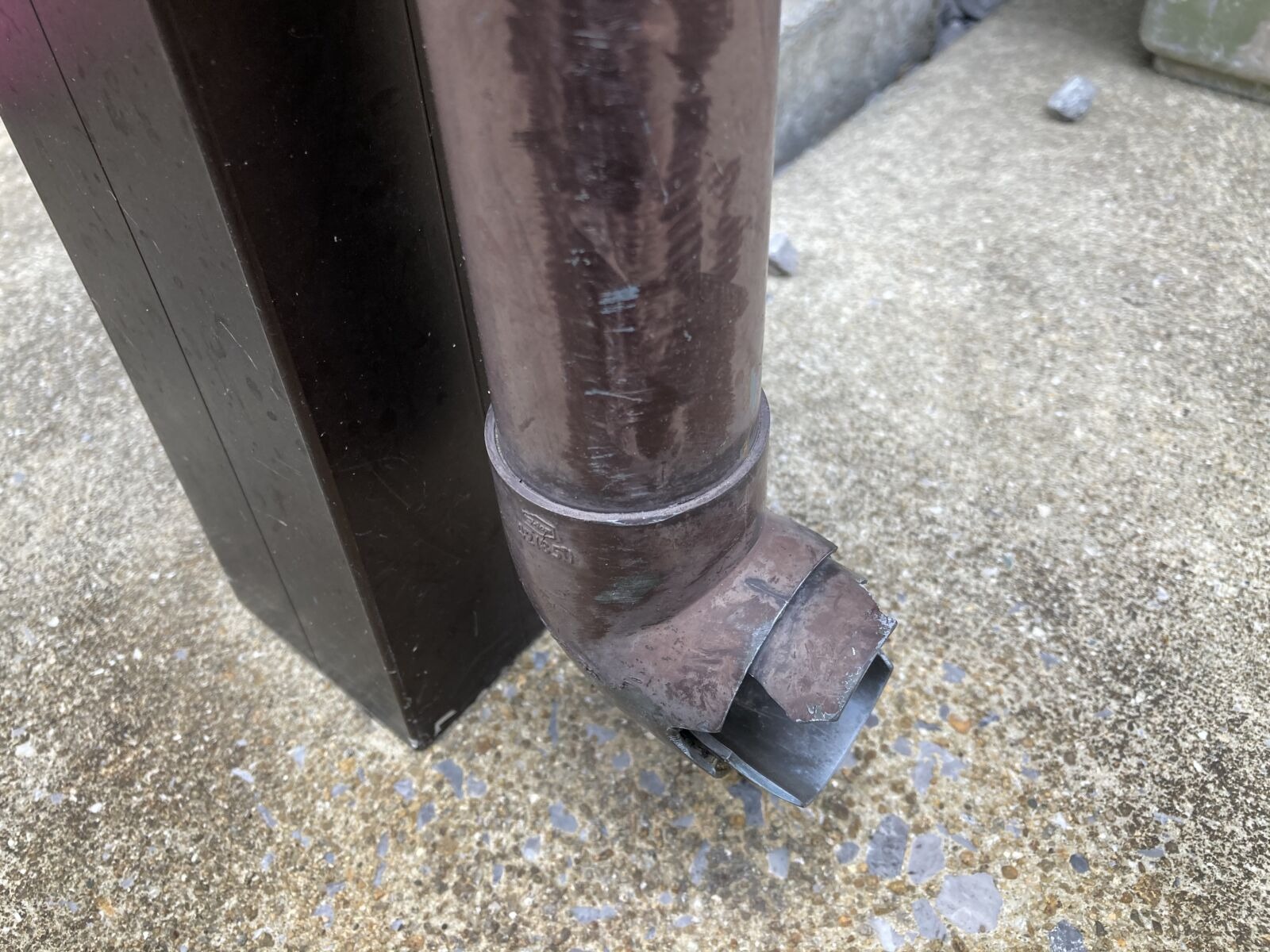 竪樋 塗膜が劣化しています。一部破損もあります。