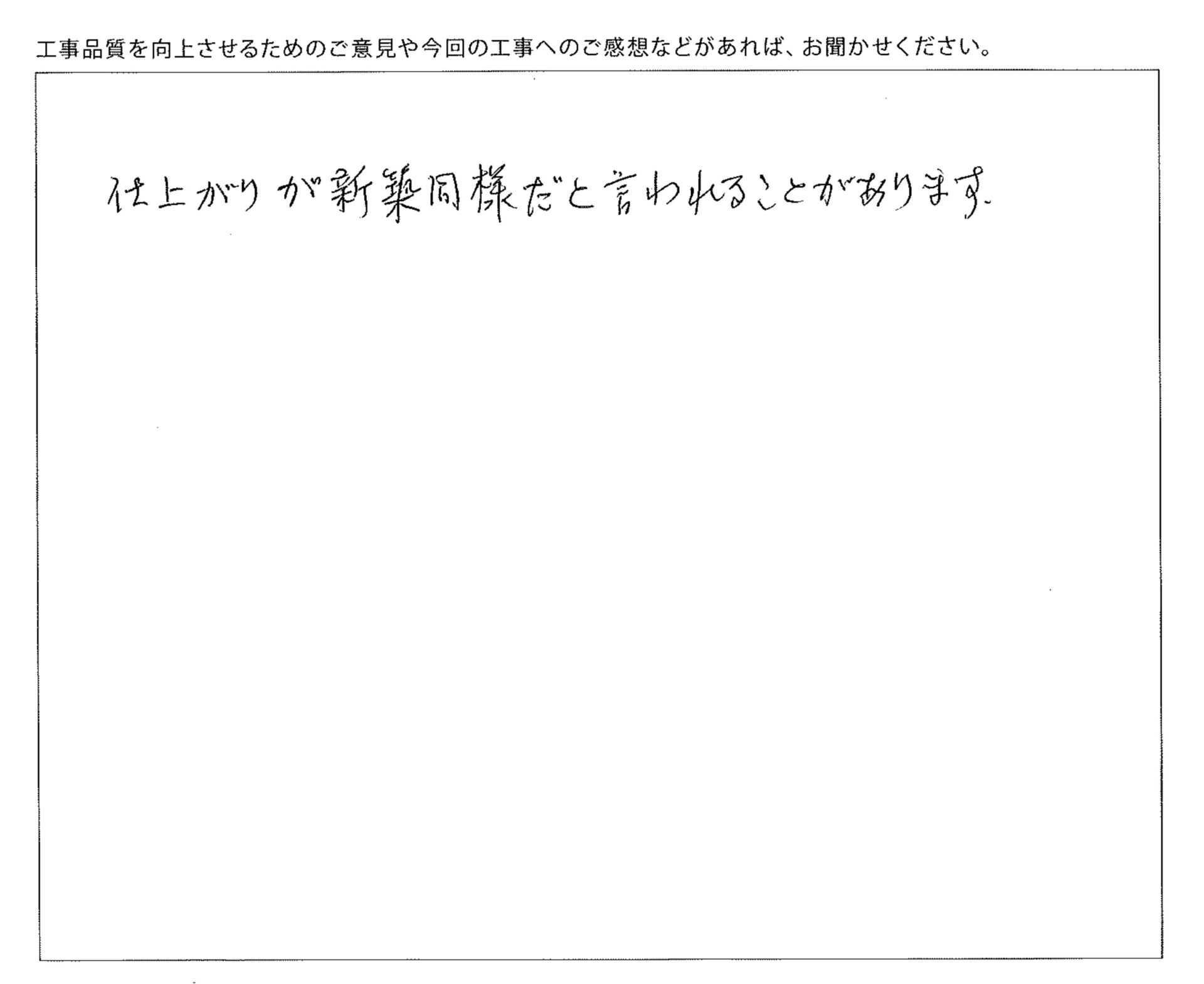 工事品質を向上させるためのご意見や今回の工事へのご感想などお聞かせください。